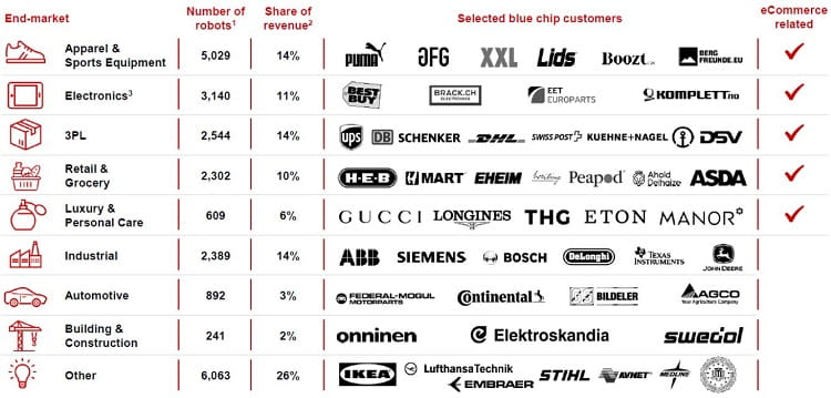 虽然Ocado 的目标是杂货零售商,但AutoStore 的跨行业多元化程度要高得多。一些著名的AutoStore 客户包括Best Buy、ASDA、Siemens、Ikea、UPS、John Deere 和DHL。