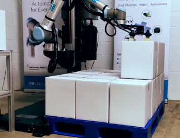 机器人码垛机的设计充分考虑了灵活性。安装、设置和配置快速且简单,它们能够处理频繁的任务变化以及不同的箱子和托盘尺寸。优傲机器人的协作机器人,就像视频中的那个一样,可以拣选各种箱子并处理高达 16 公斤的有效载荷。它们还可以覆盖广泛的高度和不同的托盘尺寸,并且占地面积小。