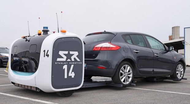 Stanley Robotics自主移动机器人正在汽车物流专家的现场进行车辆存储操作的测试