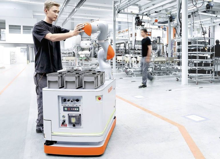 许多机器人供应商已经接受了这个想法。例如,库卡公司从2018年年中开始提供适合工业的系列产品,即KMR iiwa(移动平台KMP 200与Cobot LBR iiwa的组合)。