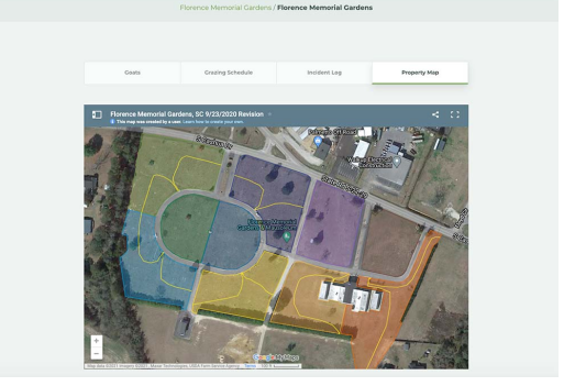 My Goat 的远程控制台显示了部署割草机的物业的鸟瞰图。|图片来源:My Goat