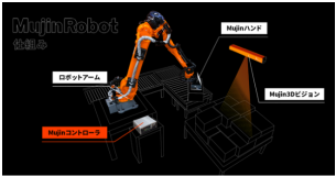“Mujin Robot”是由大脑“Mujin控制器”控制作为眼睛的3D视觉、作为身体的机械臂、作为手的机械手的机器人。它是一个满足广泛需求的产品组,具有独特的功能,利用了 360 多项专利技术,例如高处理能力、条形码阅读器功能、防止工作挤压功能和工作变更功能。