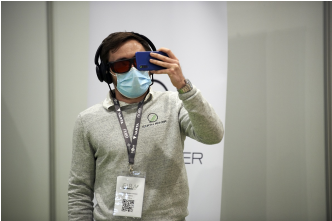 这位参与者准备使用并拍摄“除草”机器人的表演。© Alain Pitton