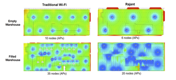 拥有多件独立工作的移动设备的仓库和移动中的员工,都有能力不受干扰地漫游。前面提到的金属架阻挡阻碍了传统的Wi-Fi和LTE通信,因为移动设备在各个走廊移动。对重叠单元的需求和随时保持连接的能力,是Rajant提供的一个不断增长的需求。