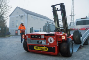 清晨,气温冰冷,德国上普法尔茨地区的蒂申罗伊特正在消失在浓雾中。Energo Partners 团队已经开始工作,因为今天每一分钟都很重要。为了尽快升级变电站,现场需要 32 个中压系统。挑战:在工作现场没有直接进入重载叉车的通道。他们很庆幸有一台 帕尔菲格 BM 214 随车遥控叉车,它可以轻松管理最后的重要仪表并精确定位系统组件。