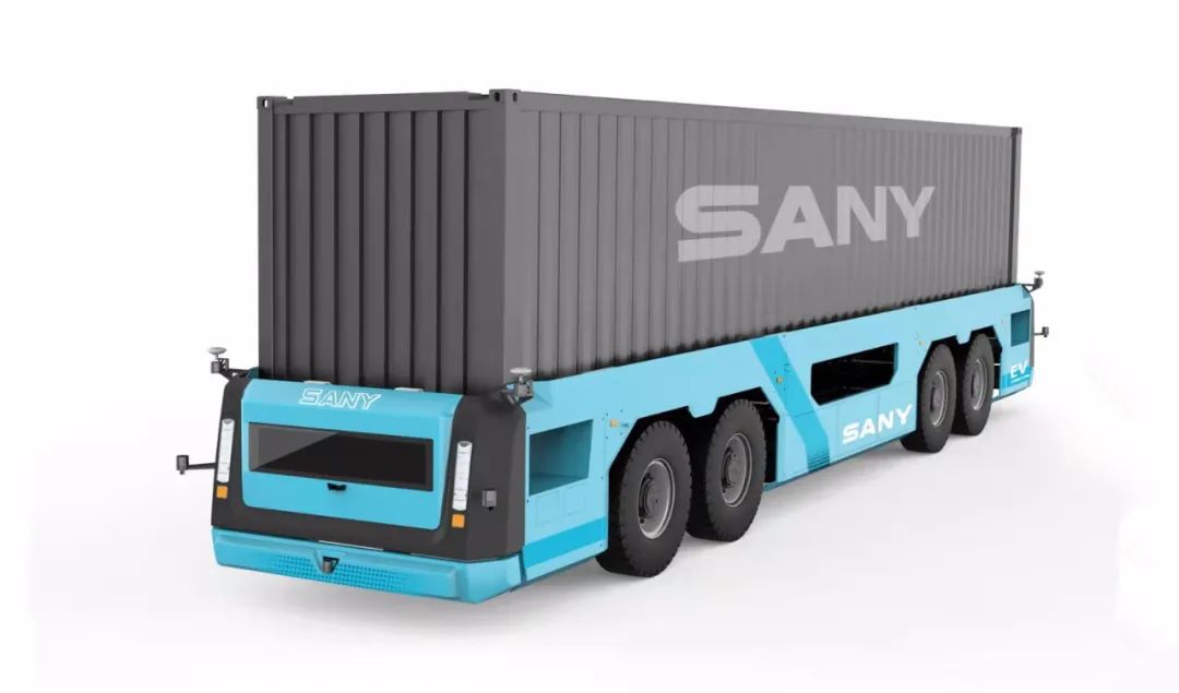 3月1日上午,恰逢三一节,三一又一款无人产品——自动化集装箱运输车(AGV)成功下线。