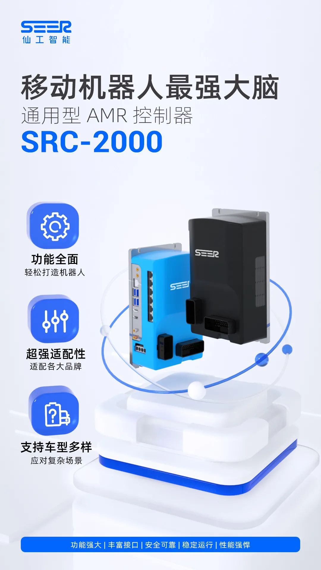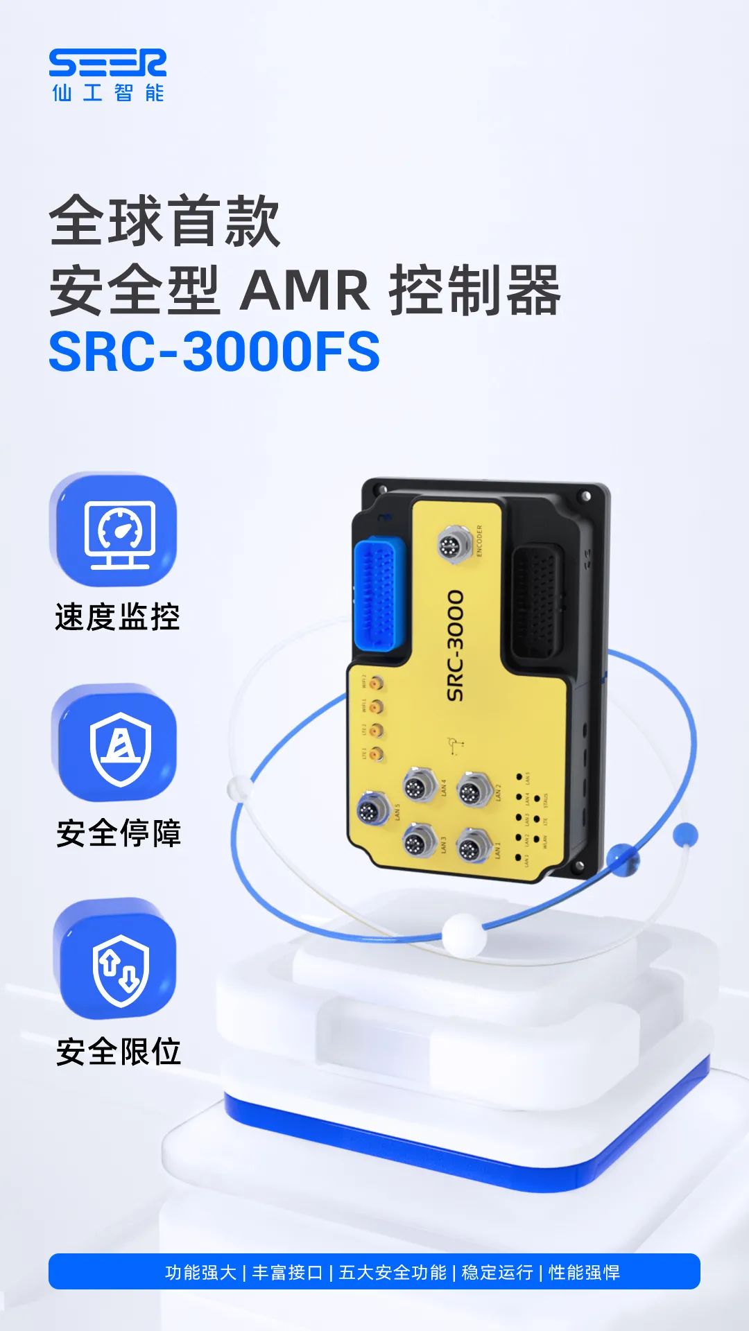 基础款 AMR 控制器 SRC-2000,可控制多种类型移动机器人,最新款 SRC- 2000 还可控制复合机器人的手臂。SRC-2000, the basic AMR controller, can control various types of mobile robots. The latest version of SRC-2000 can even control the arms of composite robots.全球首款安全型控制器 SRC-3000FS,全覆盖 SRC-2000 的功能,通过了 CE安全认证,可打造安全型 AMR。