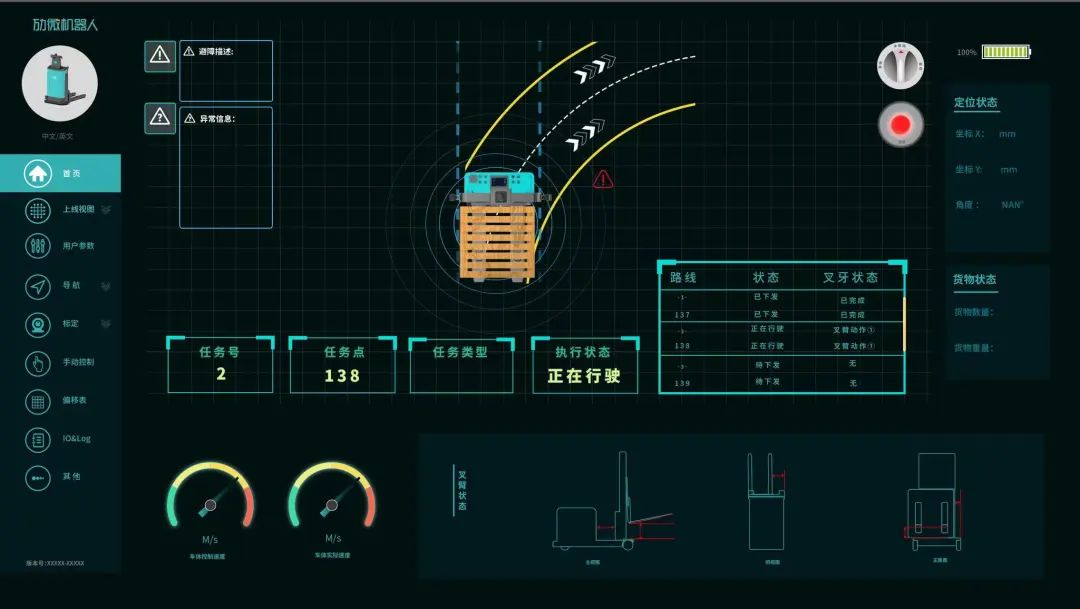 支腿根部增加扫码模块,用于货物信息回传;全车增加视觉姿态识别功能,以提升柔性化能力。
