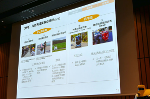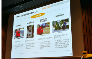 之后,首先是先进地方政府介绍了示范案例。首先,来自筑波市政策创新部总经理森佑介先生。在筑波市,已经展示了 Segway 等登机型移动支持机器人,并且正在进行 Robocon“筑波挑战赛”,但自动交付本身仍在未来。到目前为止,本田和乐天项目正在筑波大学校园内进行,时间为 2021 年 7 月 19 日(星期一)至 8 月 31 日(星期二)。预计未来还将用于其他领域。