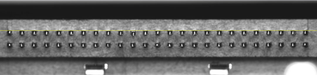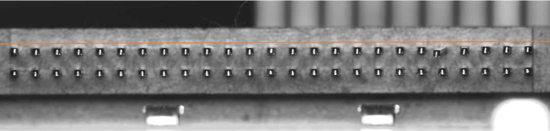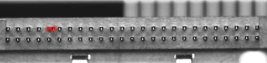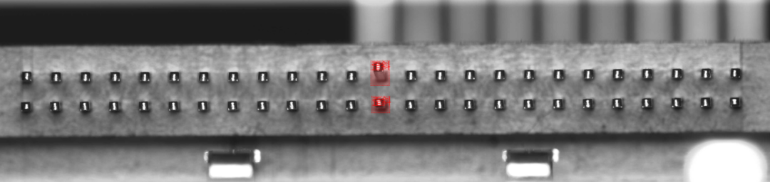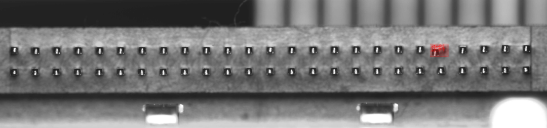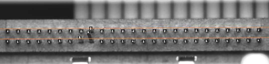 对连接器表面缺陷进行检测,Pin针数量分布25×2,需要检测Pin针有无偏斜、变形。