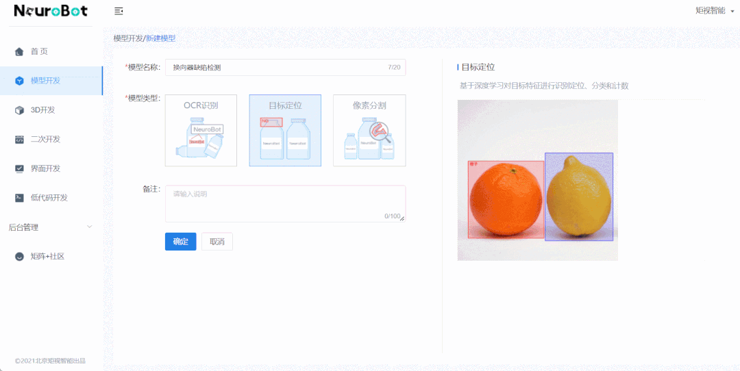 随着工业自动化的蓬勃发展,很多制造商在产品的生产过程中,总会出现一些瑕疵,不良,畸形,贴合偏差等。有时人工无法达到要求的精度时,运用机器视觉系统的定位/对准/对位,能顺利完成高精度的制造工序。但是,在物体检测过程中也有很多不确定因素,如图像中物体数量不确定,物体有不同的外观、形状、姿态,加之物体成像时会有光照、遮挡等因素的干扰,导致检测算法有一定的难度。检测如果存在精度问题,就会导致不良品的产生,检测及控制一旦存在时滞,也就会降低生产性。如何实现快速准确定位,成为生产工序高效化不可或缺的手段。矩视智能低代码平台融合深度学习算法,2D/3D视觉,SaaS工具和aPaaS模块化组件。完成图像采集、图像标注、算法开发、算法封装、应用集成的完整开发工具链,无需编程,支持深度学习模型训练闭环,将开发效率提升10倍以上,颠覆了传统的项目定制开发模式,满足不同业务场景下的差异化需求,助力产业智能化升级。