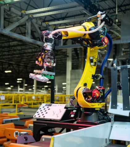 Robin 使用其吸盘从传送带上拾取包裹。| 资料来源:亚马逊机器人和人工智能