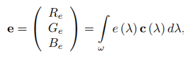 f是图像,e(λ)代表入射光频谱,s(λ)代表物体反射率,c(λ)代表sensor的感光度,λ代表波长。