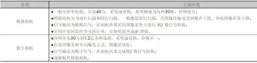 按照输出信号方式:可以分为模拟相机、数字相机;