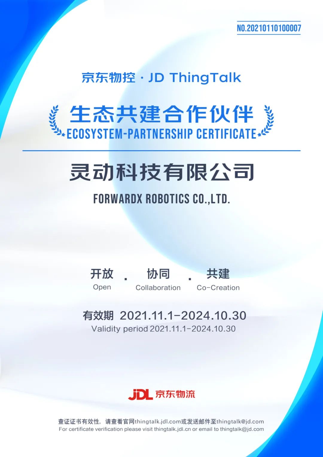 在自主研发与合作共建的双轮驱动下,机器人创新应用生态逐渐走向成熟。近日,京东物控为灵动科技颁发 “生态共建合作伙伴”证书,双方将充分发挥物流产业应用及机器人技术优势,共同改进和建设相关技术标准,更好地为产业服务,助力物流数智化升级。