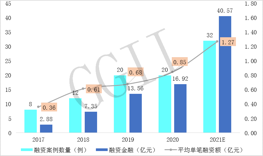 回顾2021年机器视觉的融资额再次创造新高,GGII统计数据显示,2021年中国机器视觉领域投融资案例32起,涉及投资融资资金40.64亿元。2017-2021年,中国机器视觉领域的融资案例数量和融资金额总体呈上升趋势。且新进入机器视觉领域的企业仍在持续增加。