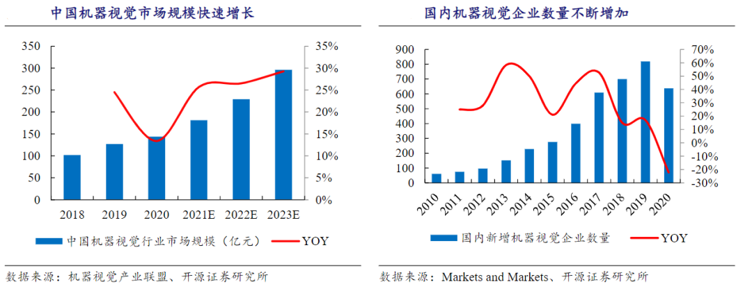 在机器学习中,它为消费者和商业应用的硬件提供了前所未有的观察和解释环境的能力。在工业环境中,这些技术,加上自动化和高速网络,共同构成了一场全新工业革命。近十年来,中国智能制造的下游市场对于产品检测、智能化的要求不断提高,推动机器视觉技术的发展进入高度增长阶段,其应用范围几乎涵盖了国民经济中的各个领域。同时,资本的涌入也造就了机器视觉行业的融资热,相关机器视觉的企业数量也在逐年增长,机器视觉市场竞争日益激烈,除去头部国际企业,国内机器视觉细分领域的头部厂商也开始初现雏形。从近几年的情况来看,我国机器视觉产业已积累足够技术、市场、行业经验,已步入快速发展阶段。