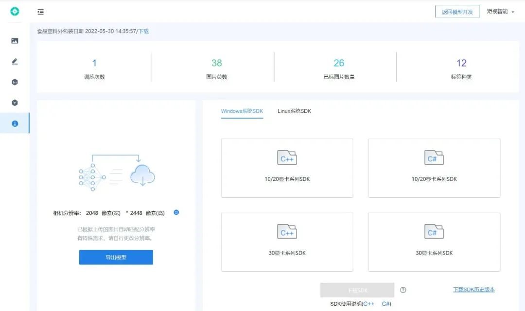 第五步:下载模型,部署本地,安装到生产线上,验收效果。