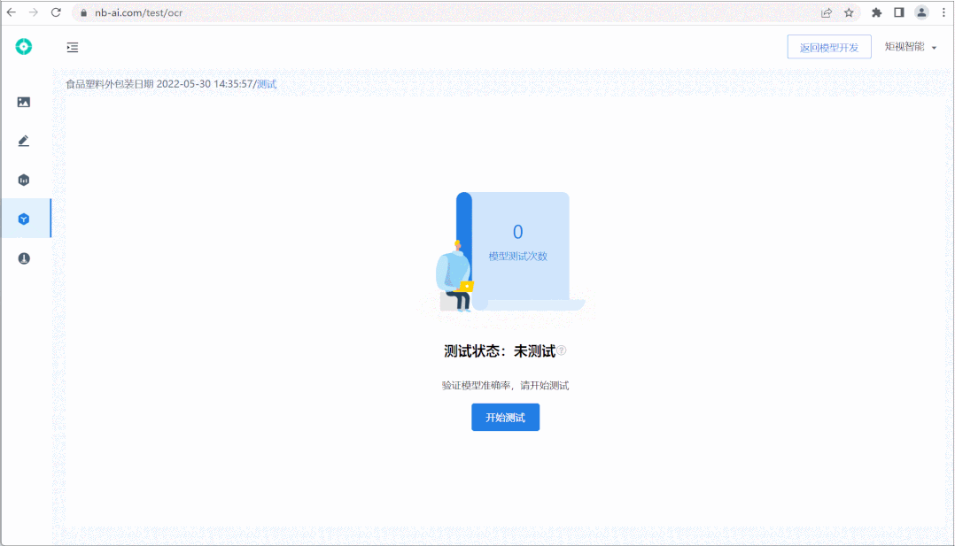第四步:检验训练效果,点击“测试”开始对训练效果进行验收,测试完毕后,未标注的图片信息转为已标注,表示自动标注完成。