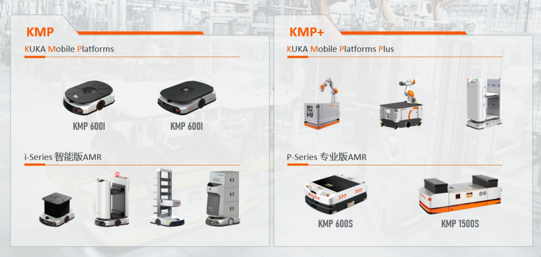 库卡移动机器人硬件产品有两个系列 :i-Series 智能版 AMR 和P-Series 专业版AMR。库卡移动机器人软件平台则是相当于“算法平台 + 基于业务的软件平台 + 机器人本体平台”,上可对接用户的ERP、MES 和WMS 等业务系统软件,下可对接流程控制系统和机器人调度系统。用户可根据自身需求,部署想要的设备 + 软件方案,灵活柔性,成本可控。