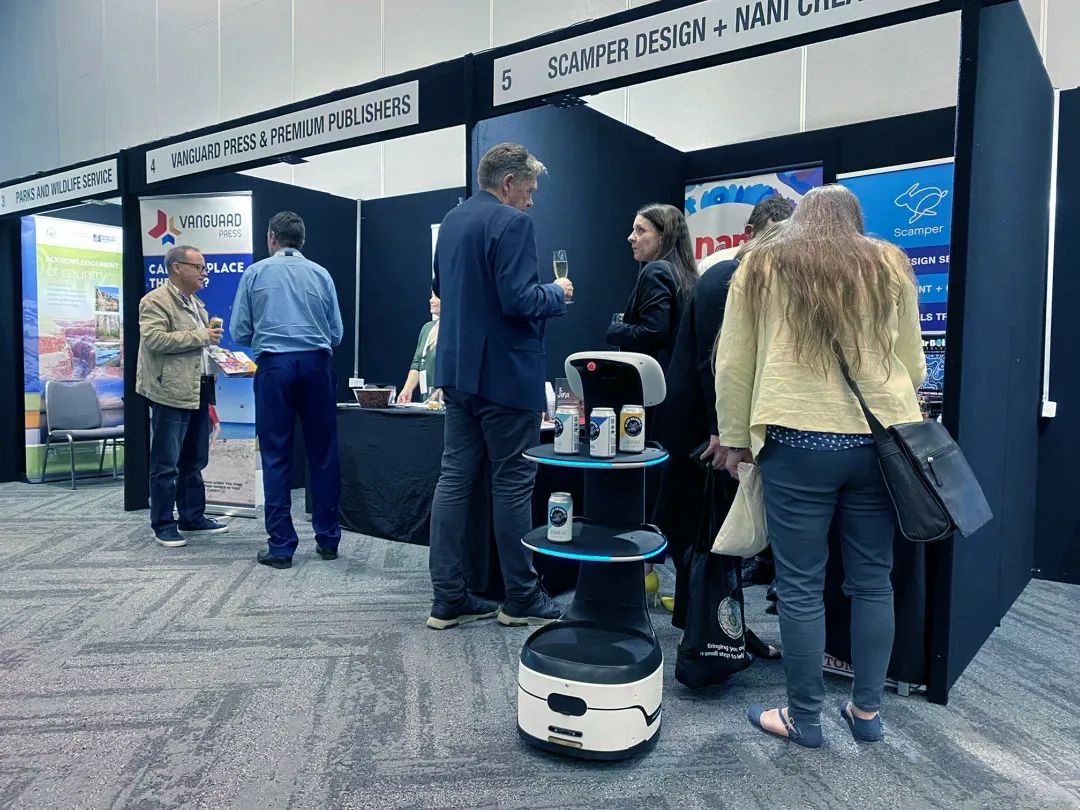 西澳旅游大会是澳大利亚重要的旅游行业盛会,得到西澳旅游局大力支持,汇集了澳大利亚众多旅业代表、地方领导人、营销人士和旅游学者。擎朗智能在展会现场,展示了旗下智能配送机器人T5、T6、飞鱼以及消毒机器人M2,提供包含配送、揽客、导引、回盘、消毒等在内的全链路智能解决方案,让来往的观众零距离感受到了中国先进服务机器人的独特风采。