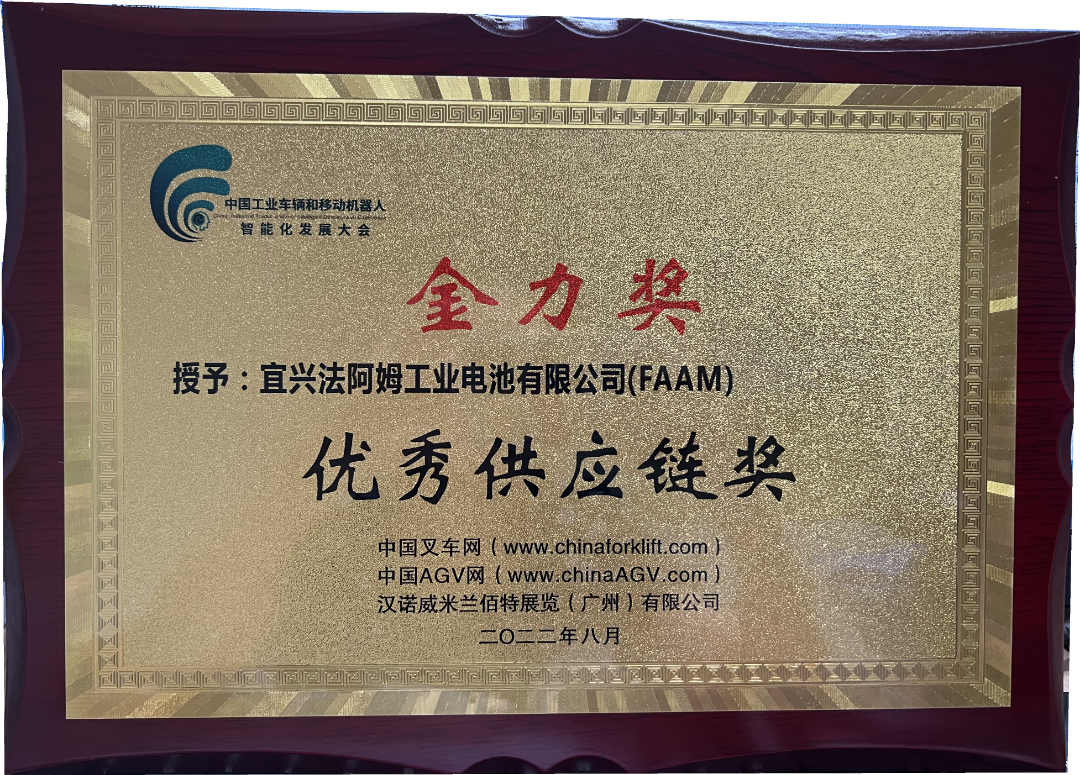 Congratulations to FAAM Chinafor winning the "Excellent Supply Chain Award" from China Forklift Network, China AGV Network, and Hannover Milan Better Exhibition (Guangzhou) Co., Ltd.!
