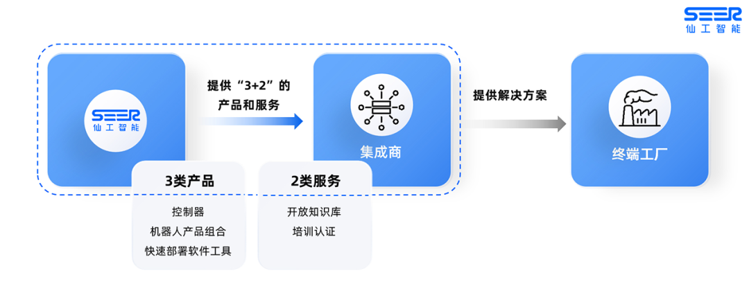 仙工智能始终坚持「以标准化产品支撑非标应用」的产品研发理念,工业场景虽然是非标的,但依然可以通过标准化产品解决多重场景问题。仙工智能认为的标准化产品可以理解为「最小公倍数」,允许修改,允许客户自主创造,并且在功能丰富的基础之上做到了简单易用。仙工智能通过为集成商提供「3+2」的产品+服务,以强大的产品矩阵和完善的服务体系,完美地解决集成商各种终端实施难题。