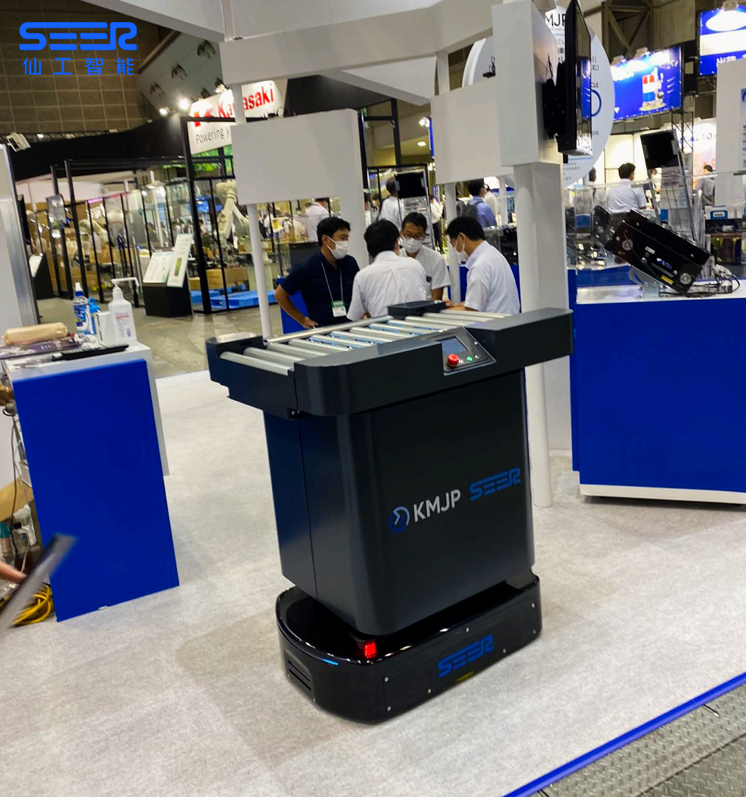 此次 LTT 2022 展会,仙工智能推出的搭载辊筒模块的 AMB-150-D 搬运机器人重磅亮相,参与产线输送展示环节。