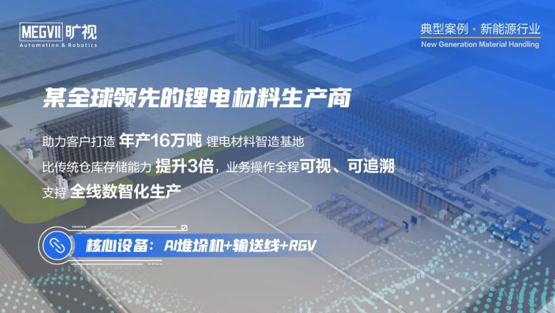 作为聚焦物联网场景的人工智能企业,旷视一直积极践行 AIoT 核心战略,并逐步构建起完整的 AIoT 产品体系及解决方案。基于在智慧物流领域的先进技术和实践经验,旷视已成功助力爱旭、赣锋锂业、紫宸科技等十余家新能源 TOP 级企业的数智化转型升级,在推动新能源产业和信息技术加速融合的同时,助推新能源产业的高质量发展。