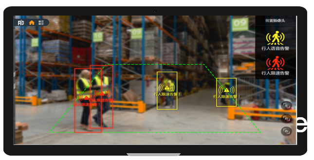 利用安装在工业车辆上的摄像头进行感应和探索车辆周围环境,进行静态、动态物体的识别、侦测和追踪,提前让驾驶员察觉到可能发生的危险,并采取自动减速及制动措施,有效提升驾驶安全性。