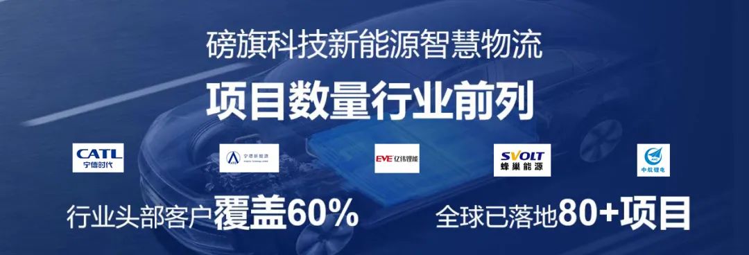 磅旗科技短短几年内,在锂电行业线内生产物流、线边物流的项目总量占有率上,居行业头部水平,并覆盖宁德时代、宁德新能源、亿纬锂能、蜂巢能源、 中航锂电……等60%的头部客户。全球已落地项目超过80+。