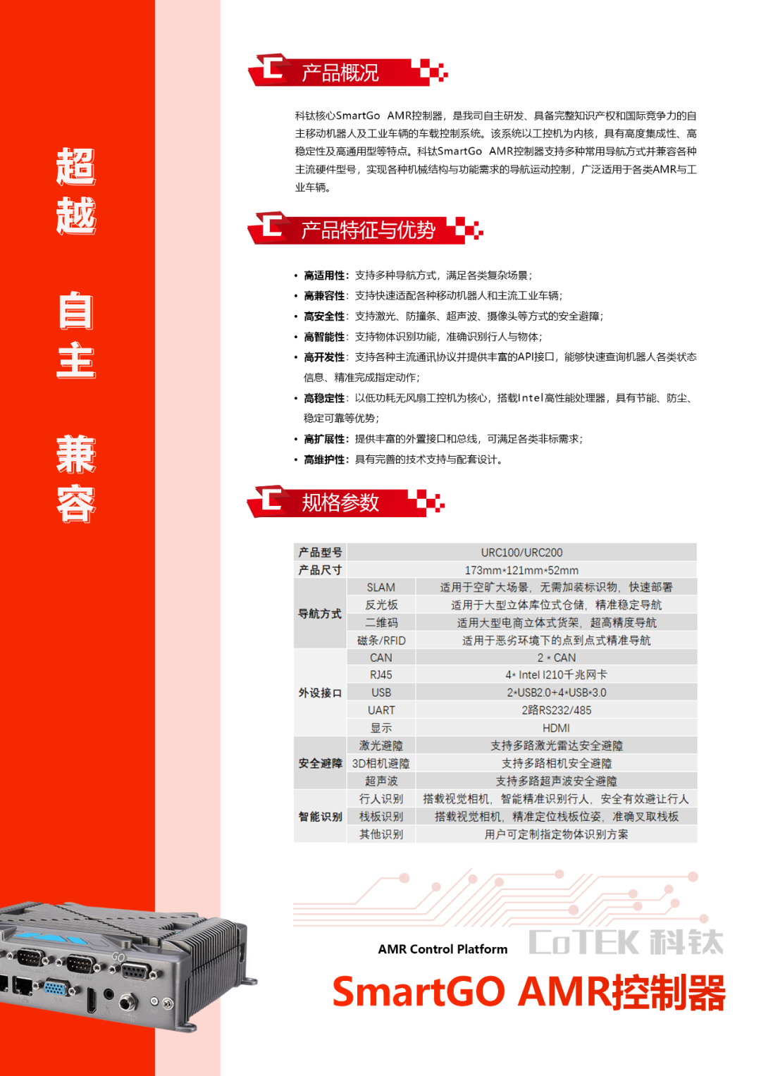 搭载科钛核心SmartGo控制器的中力智能搬运机器人进入物流行业,极大地提高了场内物流效率,节省了人力。在车辆运行较快的情况下,人员及设备经过时能及时有效避障,安全且高效。
