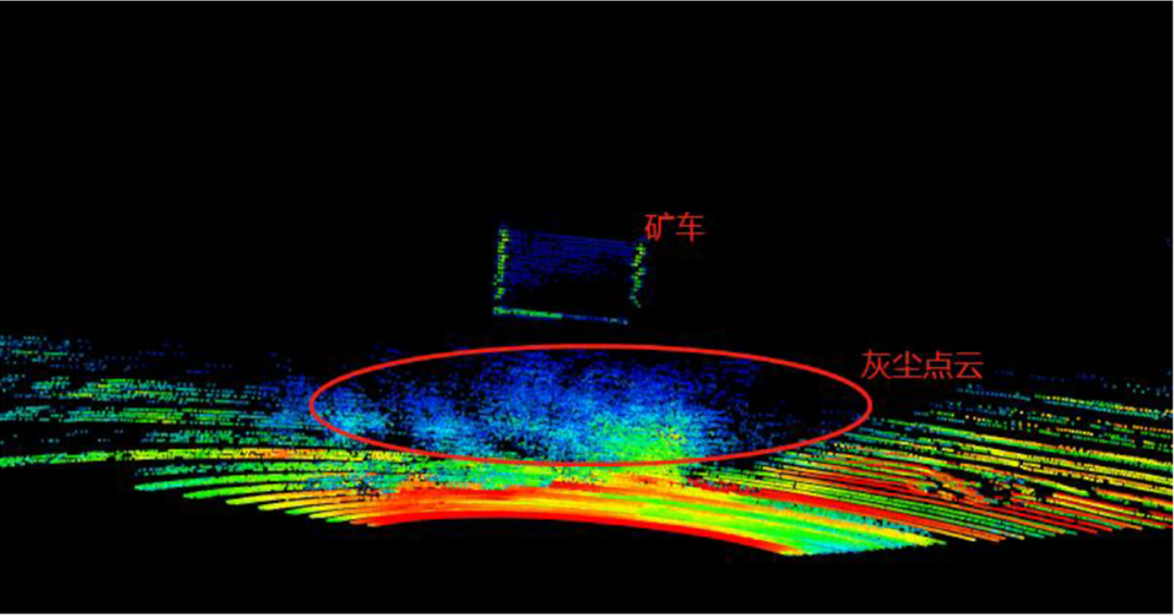 然而,在矿区环境作业时,灰尘、粉尘四起,不仅逐渐布满激光雷达表面,还会在前方形成一片尘雾,仿佛一道帘子遮住了无人矿卡的“眼睛”,影响激光雷达的探测质量,甚至导致无人驾驶车辆误判。因此在无人矿卡车辆工况实际环境运营中,灰尘对雷达感知硬性影响是行业面临的难题。