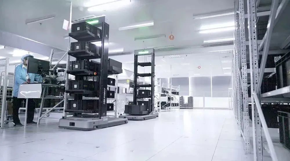 海康威视桐庐基地投入使用各类AMR逾千台,代替人力完成收货入库、分拣配送、成品入库、拣选发运等全流程作业。整场项目实现了全方位的提升,柔性更高,稳定性更强,拣选效率提升70%,人力成本降低40%。