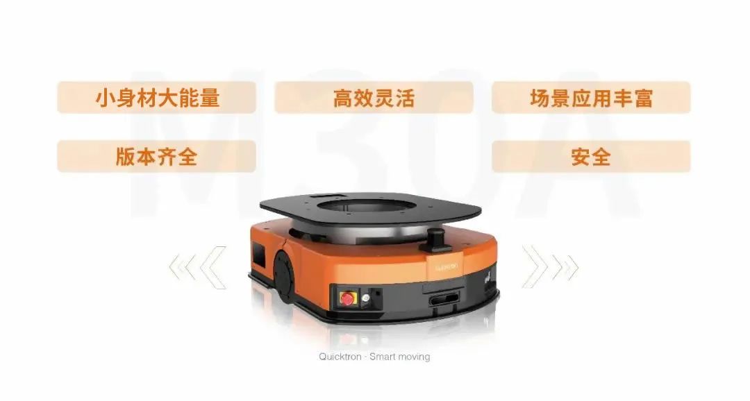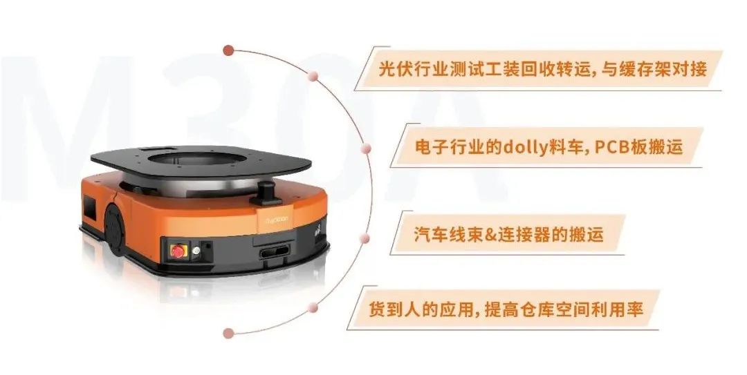 “白鹭”M30A是一款300kg载重级别的潜伏式机器人,特别适合制造场景的窄通道搬运,也能用于电商、流通场景的货架到人。