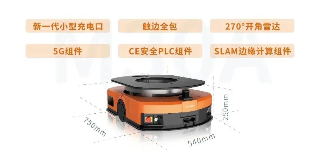 小尺寸内有大乾坤,底盘可兼容二维码导航配合组件、SLAM边缘计算组件、CE安全PLC组件、5G组件的安装。