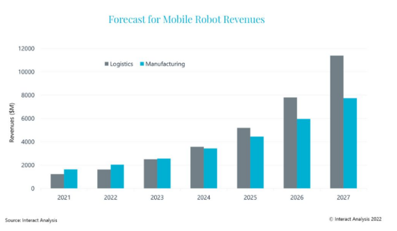 Interact Analysis对移动机器人市场收入增长的预测。| 资料来源:Interact Analysis。