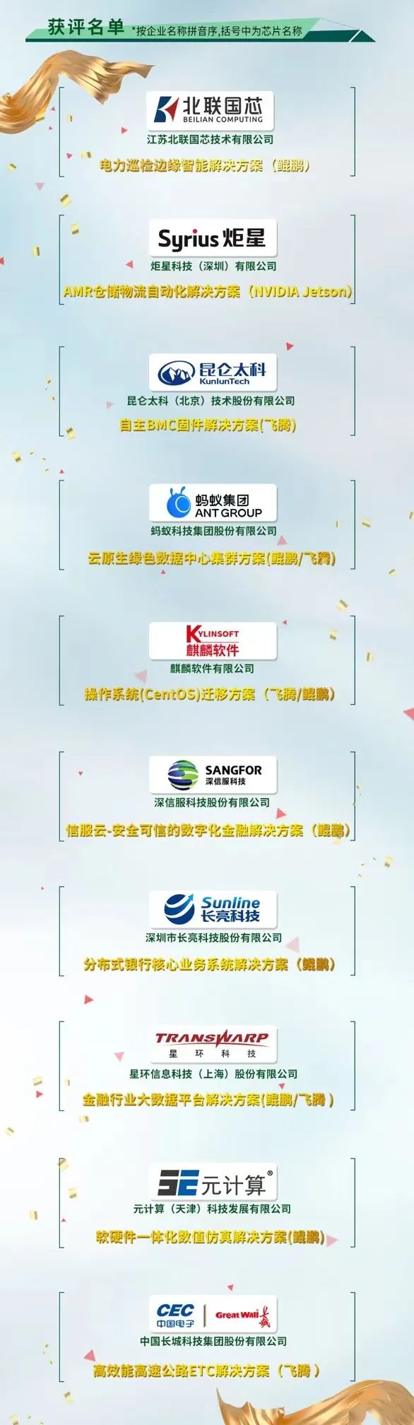本活动共收集到包括金融、政府及安平、运营商、制造、交通、互联网及其他行业等50多个示范案例,支持鲲鹏、飞腾、安晟培等不同Arm架构处理器的方案,涵盖了从整机、操作系统、数据库、基础软件到应用软件等不同技术领域的优秀实践。经过专家初选,共有20个示范案例脱颖而出,参与了终审答辩会。