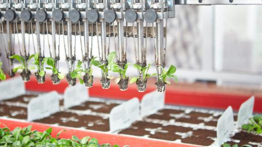 在温室中种植蔬菜和花卉时,许多植物首先在小盆中发芽,然后移植到较大的盆或苗床中。在当今的园艺企业中,机器对植物和花盆进行分类和移动。它们的设计与工业生产和物流中使用的机器非常相似。有传送带和辊式传送带,托盘上装有处于不同开发阶段的产品,可以进行运输、分类和移植。这里使用的夹具与其他行业类似设备中使用的夹具仅在“手指”的形状上有所不同。他们使用微型发动机自动转移单个盆和根球。