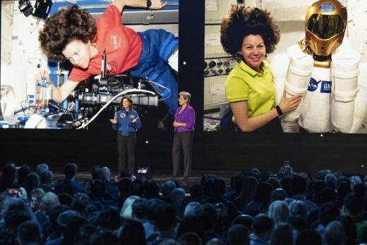 N 号前宇航员 Catherine Coleman 和 Advanced Micro Devices 首席执行官 Lisa Su 在 CES 的新闻发布会上。彭博社