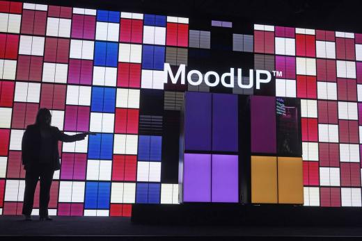 LG 展示了其 MoodUP 冰箱,该冰箱于去年 9 月首次发布,配备变色 LED 门板。它允许用户在其 LED 门上选择各种颜色,并通过其内置扬声器播放音乐。用户还可以自定义面板的外观并通过应用各种主题来刷新心情。