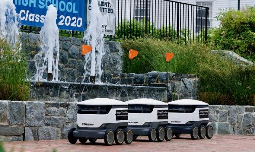 在弗吉尼亚州(美国)小镇费尔法克斯的封锁期间自动将食物运送到家中的机器人。