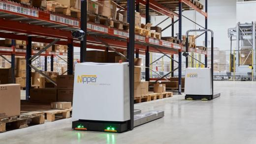 F3-Design的Nipper 托盘搬运车 AGV在美国仓库中工作。