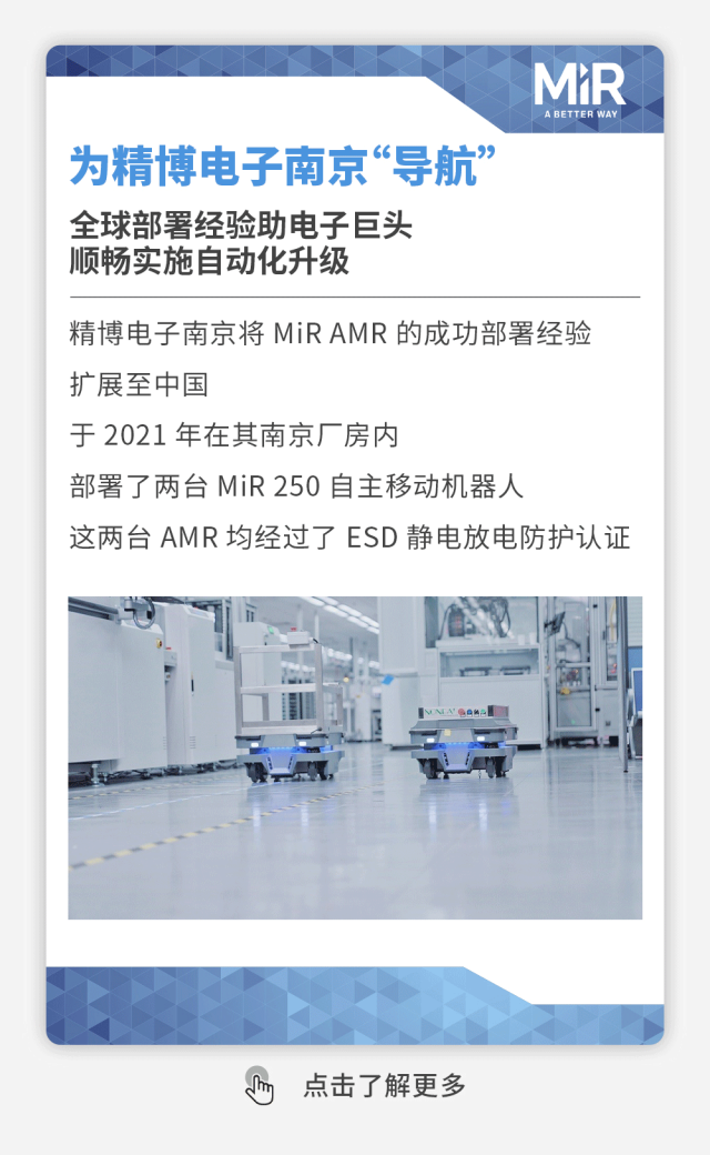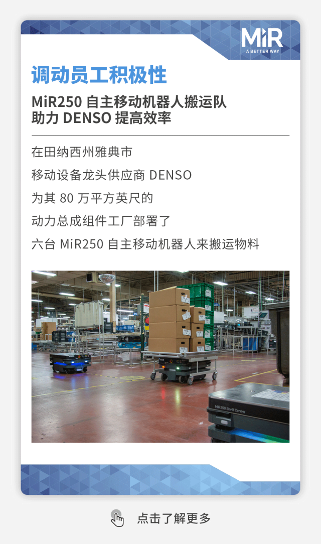 MiR致力于研发简单易用且灵活安全的机器人,帮助各类公司提高运营效率。MiR的自主机器人是新一代的先进移动机器人,具有投资回报快的特点,通常一年内就能收回成本。这些独特的协作机器人现已在工业及医疗保健行业大放异彩,帮助这些行业的制造商实现内部运输自动化。