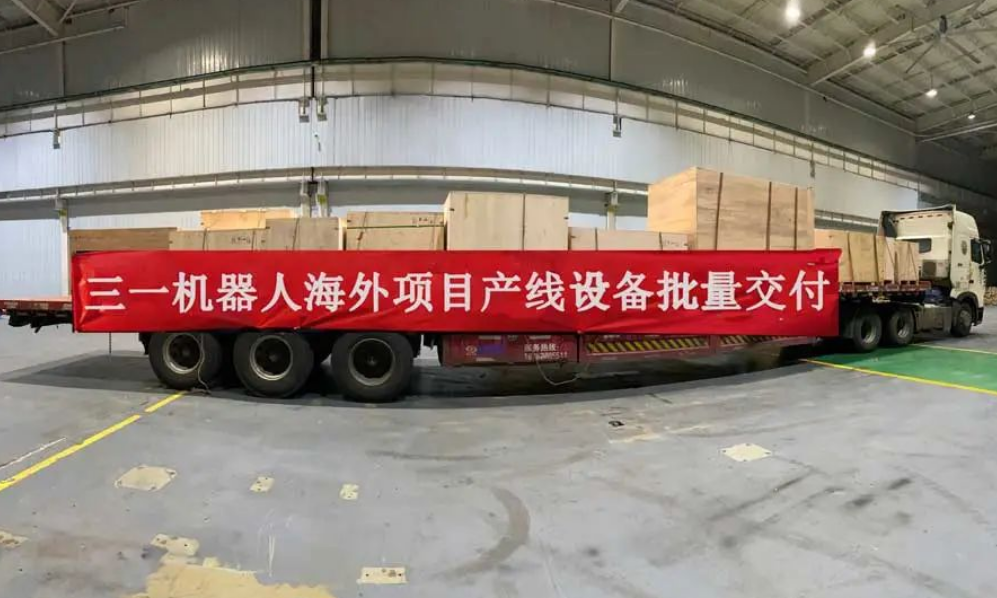 2022年12月由三一机器人自主打造的锂电池拆解成套设备,乘船发往新加坡。这是三一机器人首次出口成套智能产线。