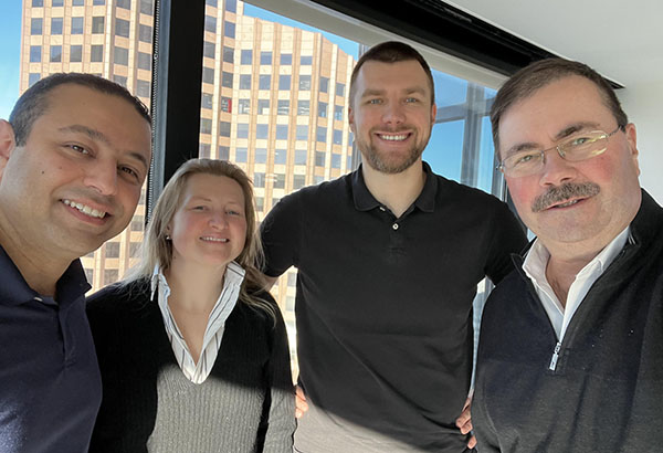 Cybernetix Ventures的普通合伙人Fady Saad与KEWAZO的首席执行官Artem Kuchokov、Cybernetix Ventures的负责人Sasha Jostrom-Reiser和Cybernetix Ventures的普通合伙人Mark Martin最近在波士顿的一次会议上。资料来源:Cybernetix Ventures。Cybernetix风险投资公司