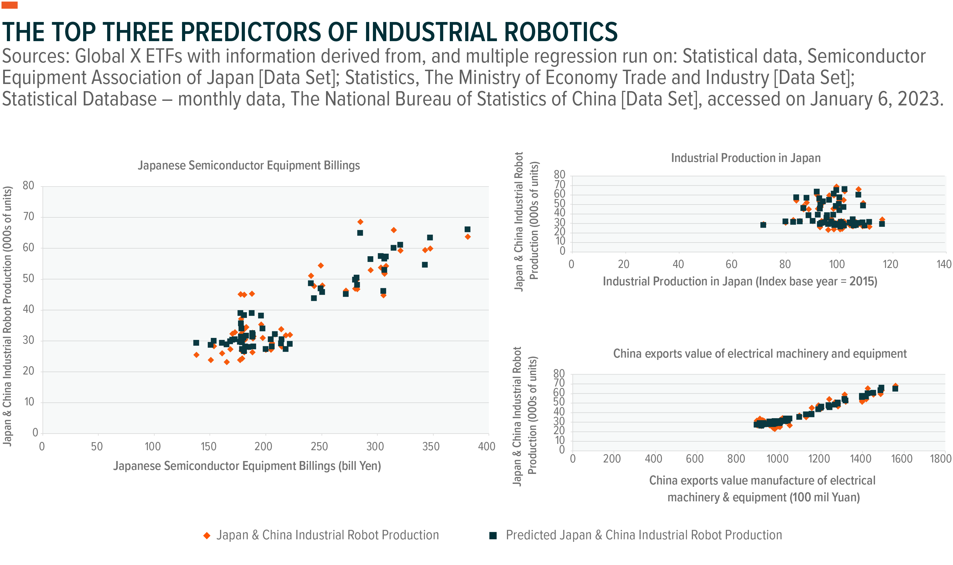 历史告诉我们,我们可以从日本和中国来衡量工业机器人和自动化的前景,我们预计2023年也是如此。由于关键数据点继续显示出优势,行业动态支持那些对机器人主题有强烈兴趣的公司。全球工业机器人的生产和销售保持了最近的积极增长轨迹,并得到了日本半导体账单的创纪录水平的支持。鉴于中国电气机械和设备的出口值有些疲软,这些趋势更加突出,我们预计随着中国的重新开放,这种疲软将在2023年扭转。宏观经济环境可能在短期内对工业机器人技术构成挑战,但在我们看来,企业对自动化的驱动力显然是存在的。