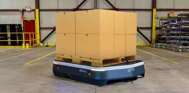 这些无人驾驶叉车在整个设施中运输重型物料。通常有两种类型:一种是托盘升降机,可以将物料从地板上的一个位置运送到另一个位置;另一种是托盘堆垛机,用于堆放物料。