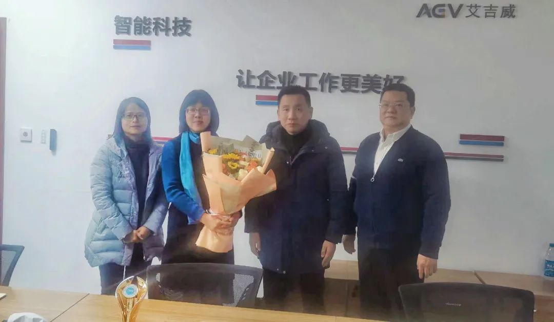 1月30日,苏州工业园区宣传和统战部副部长、民宗局局长、园区工商联党组书记林红梅,阳澄湖旅游度假区党工委委员、副主任蒋云一行莅临艾吉威机器人苏州总部开展“送福暖心”走访慰问活动。艾吉威机器人联合创始人、董事长司秀芬博士,艾吉威创始人、总裁刘胜明陪同接待并举行座谈。