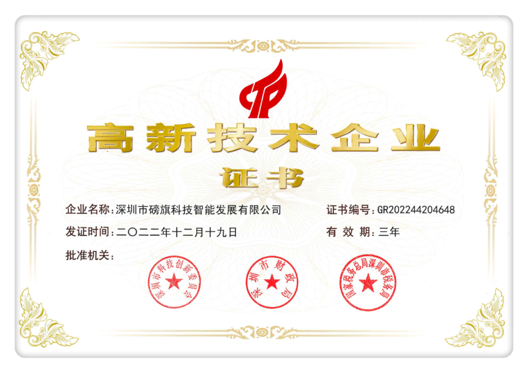 高新技术企业认定是根据科技部、财政部、国家税务总局的有关规定,经严格审查、公示后,由全国高新技术企业认定办公室确认的资质,是中国高科技企业最高荣誉之一。此认定对企业的研发能力、科技成果转化能力及各项成长性指标有着严格要求。除了要考察磅旗科技整体经营业绩之外,更着重对磅旗科技创新研发管理水平、产品技术含量、成果转化能力、成长性、质量保证等重要指标的考察。此次获得认定,既是对磅旗科技技术实力的权威认可,也是对技术创新工作的肯定。